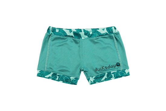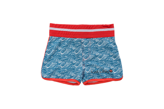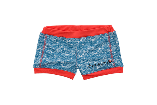 Spodenki kąpielowe Ducksday UV50+ niebiesko białe koralowa czerwień