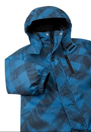 Główne szwy klejone, wodoodporne;Bardzo wytrzymałe wzmocnienia na nogawkach i pośladkach;Z izolacją Fellex® w 100% z recyklingu poliestru z certyfikatem bluesign®;Bezpieczny, odpinany kaptur;Elastyczne ściągacze rękawów i nogawek;Kieszenie na piersi;Odpin