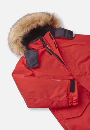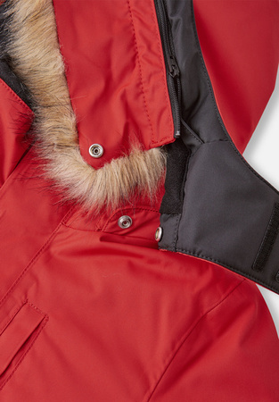 Bezpieczny, odpinany i regulowany kaptur z odpinanym sztucznym futerkiem