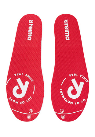 Wyjmowane profilowane wkładki EVA z podszewką z elastane i nadrukiem Happy Fit ułatwiającym wybór odpowiedniego rozmiaru