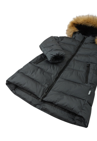 Dziewczęcy krój;Gładka poliestrowa podszewka;Z izolacją Fellex® w 100% z recyklingu poliestru z certyfikatem bluesign®;Bezpieczny, odpinany kaptur z odpinanym sztucznym futerkiem;Elastyczny mankiety;Obustronny suwak na całej długości;Dwie kieszenie na suw