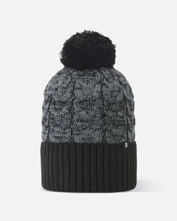 Miękka i ciepła dzianina z mieszanki wełen;Wiatroszczelne wstawki na uszach;Szeroka, zagięta krawędź;Pełna podszewka: miękki, ciepły polar;Pompon na czubku;Piękny projekt kabla