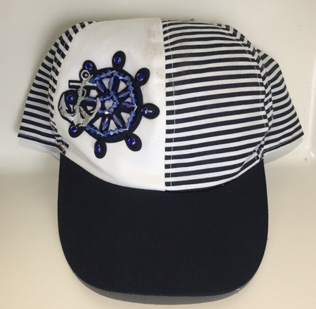 Czapka 100% bawełniana, idealna na wiosnę i lato. Możliwość regulacji obwodu, dzięki zapięciu na rzep, na czole wszyta podszewka dla lepszego odprowadzania wilgoci. Model ze standardowym, półokrągłym dszkiem i motywem żeglarskim.