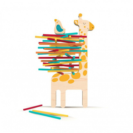 A może, dla utrudnienia zabawy, uda się Twojemu maluchowi zrobić tak, że ptaszek pozostanie na grzbiecie żyrafki pomimo tego, że patyczki będą wyciągane?
