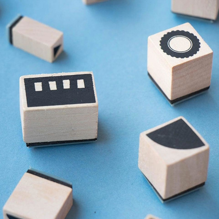 - Ilość sztuk 16 stempelków, notes, 4 poduszki z kolorowym tuszem