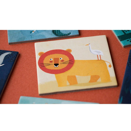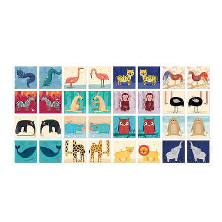 - Duże kafelki są łatwe do uchwycenia dla małych rączek. Układanka jest z bajkową grafiką z dzikimi zwierzętami, w zestawie 16 par obrazków.