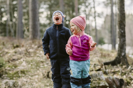 - Dwustronna kurtka dziecięca z hydrofobowym materiałem zewnętrznym po jednej stronie i ciepłym misiem po drugiej.