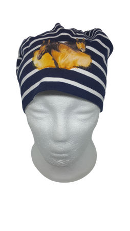 Miękka i wygodna czapka Maximo Kids, idealna na porę wiosenną lub cieplejszą jesień. Wykonana z oddychającej, elastycznej tkaniny, głównie bawełnianej. Wzbogacona została o filtr UV50+. W paski, z motywem dwóch koni na froncie czapki.