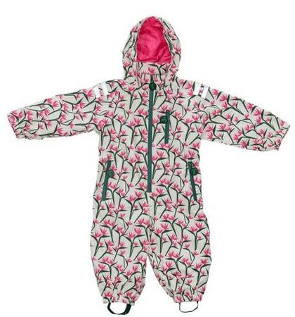 Super wygodny i praktyczny, jednoczęściowy kombinezon przejściowy. idealnie nada się na każdą porę przejściową, wiosenną, jesienną. Wykonany z oddychającej, membranowej tkaniny, chroniącej przed wodą, zabrudzeniami oraz wiatrem. Przed przewianiem i przemoczeniem dodatkowo chronią: podklejane szwy, zintegrowany kaptur z możliwością regulacji na rzep, dla lepszego doposowania do głowy dziecka, odporny na przemakanie suwak, ściągacze w mankietach, z dodatkowym rzepem regulującym szerokość rękawa, ściagacze w nogawkach z podstópkami oraz stójka z osłoną podbródka przy zakończeniu suwaka. Dla zwiększenia bezpieczeństwa dziecka, szczególnie w ciemnościach, na ramionach elementy odblaskowe. Dziecięce skarby można schować w przednich 3 kieszonkach, zapinanych na suwak. Dla zgrabniejszego wyglądu, częściowy ściągacz w pasie.
